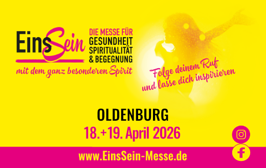 Am 18. & 19. April 2026 ist es soweit: Die EinsSein-Messe öffnet in den Weser-Ems-Hallen Oldenburg ihre Türen und schafft einen Raum der Begegnung, Inspiration und des bewussten Seins – für alle, die etwas für ihr körperliches, geistiges und seelisches Wohlbefinden tun möchten und offen sind für neue Impulse.